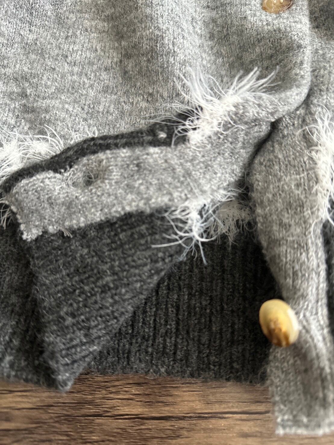 べっ甲風なボタンもポイントです。 伸縮性があり、ふっくら柔らかい肌ざわりです。